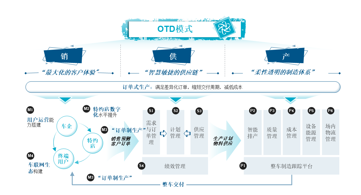随着市场需求变化,电动车市场崛起,该企业在新市场环境下面临油车销量下滑、电车销量不济、库存水平越来越高的挑战。急需从原来以产定销的模式向以需求为导向的订单拉动式供应链模式转变,从而达成供应链效率高、成本低、响应快、客户体验佳的目标