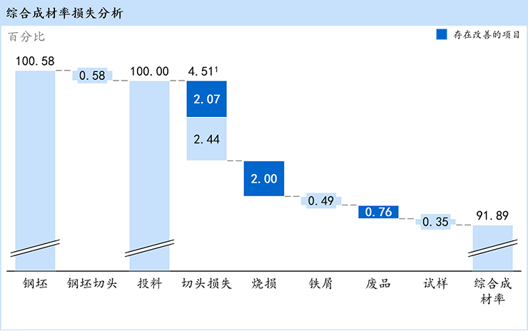 - 采用MIFA、问题树和各类精益工具进行量化诊断,主要从三个方面识别改善机会,包括成材率提高、能耗下降和提高设备效率。并应用多种分析工具对识别的浪费和痛点问题进行深入的原因分析