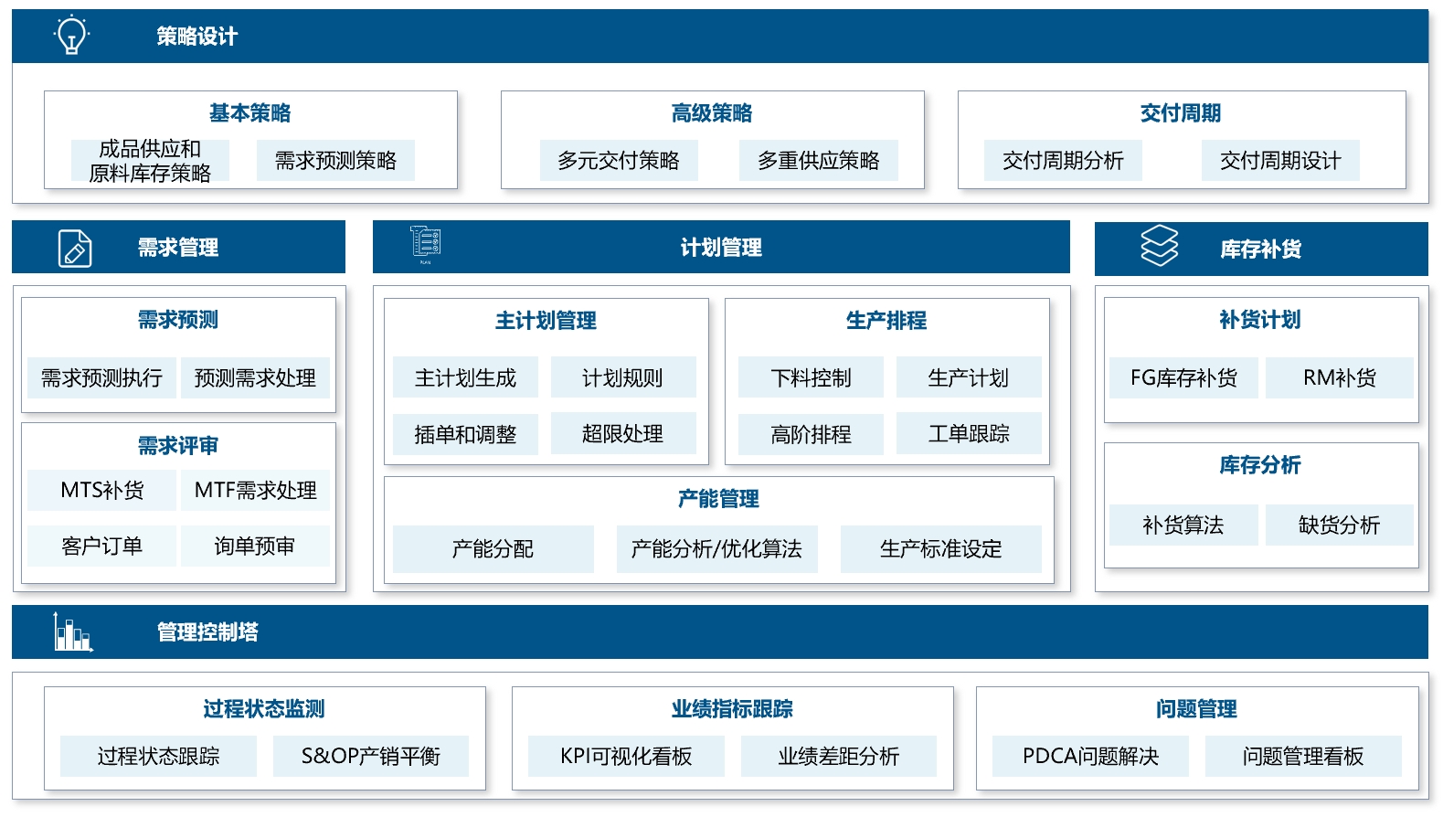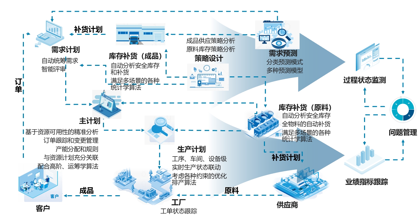 - 订单到需求、计划、生产、交付的端到端流程的全覆盖